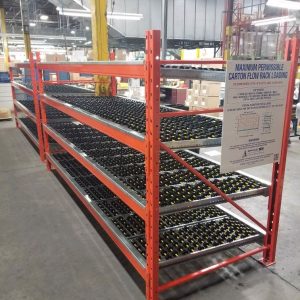 • Details: Welded Frames, Box Beams, Carton Flow Track. 2 Bay System (42” Deep x 96” High x 26’ Wide)