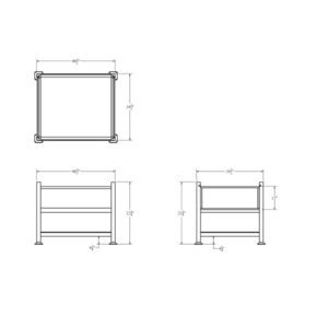 CONTAINER 34-1/2″ X 40-1/2″ X 32-1/4″ O.H. 3,000 LBS. – 15 CU. FT CAPACITY 3/4-13 EXPANDED METAL SIDES SOLID SHEET FLOOR ONE HALF DROP GATE ON EACH 34-1/2″ SIDE STACKABLE FIVE HIGH FOUR WAY FORK ACCESS UNDERCLEARANCE 4-1/4″