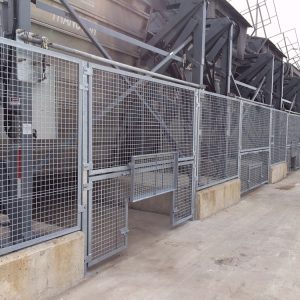 - Details: 2 Sided Enclosure Approx: 26 sections x 10′ long x 96″ high Fence c/w Access Doors for Controls and Cleaning