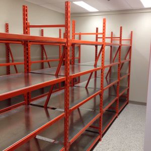 - Details: Frames, E Beams, Steel Decks. 24 Bay System (18” Deep x 84” High x 72” Wide)