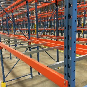 - Details: Frames, Box Beams, Safety Bars, Wire Mesh Decks, End of Aisle Guards. 750 Bays system (42” Deep x 216” High x 96” Wide)
