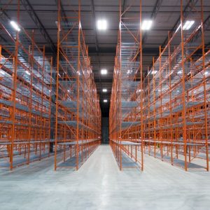 - Details: Frames, Box Beams, Wire Mesh Decks, End of Aisle Guards. 1,000 Bays system (42” Deep x 312” High x 96” Wide)