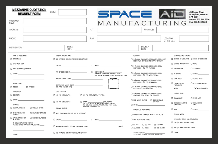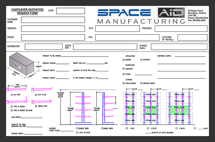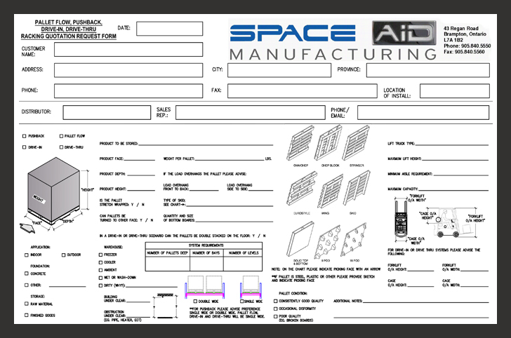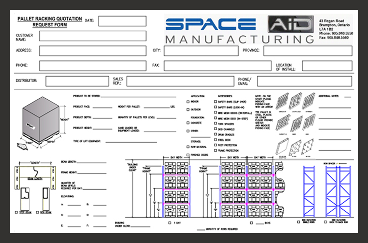 With more than five decades of experience and a skilled professional team of engineers, installers, and customer service representatives Space Aid Manufacturing is committed to providing outstanding solutions to all our customers. All our products are designed in compliance with government regulations, including the Canadian Standard Association (CSA), Rack Manufacturing Association (RMI), Municipal and provincial building codes and the occupational health and safety act (OHSA) where applicable. For more information please feel free to contact us at 1-888-287-2046